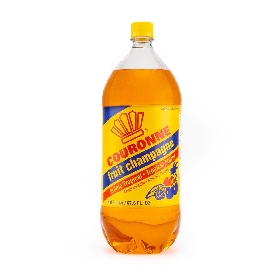 Couronne fruit champagne soda, 2 L , c'est une boisson gazeuse à saveur tropicale très connue par la communauté haïtienne et très appréciée.